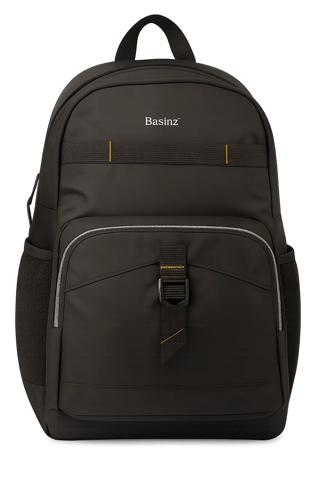 🖤 Matte black finish with yellow-accent buckle